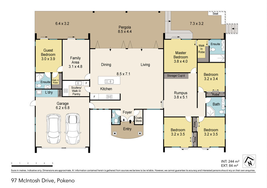 Introducing 97 McIntosh Drive, one of the most desirable homes in Pokeno! Located at the end of McIntosh Drive is this beautifully built 5 bedroom home on a substantial 4551m2 slice of kiwi paradise. As you enter this designer home, through the grand entranceway is a large tiled family room with high stud ceiling and fabulous views across acres of farmland. The kitchen has engineered stone benchtops, double oven, large gas cooktop and scullery including ceramic cooktop and 3rd oven! The open plan dining and family living room flows seamlessly through the bi-fold doors to a covered deck area - the perfect space to entertain all year round.